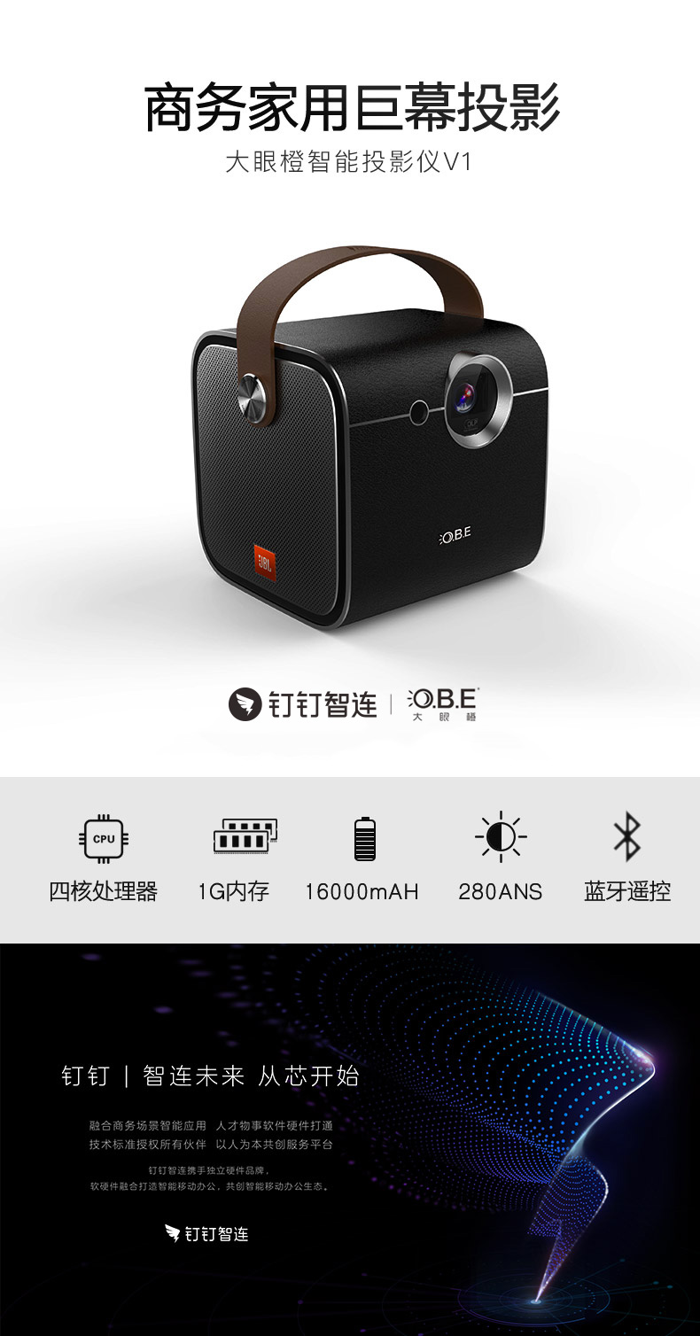 这款投影仪虽然造型小巧便携,却有强大的功能。一键投屏,可应用于多种场景。其镜头能够高精确自动对焦,快速呈现高清画面,内置大容量电池,保证超长续航。喇叭采用大音腔超声波无缝粘合技术,打造超强层次感音效。