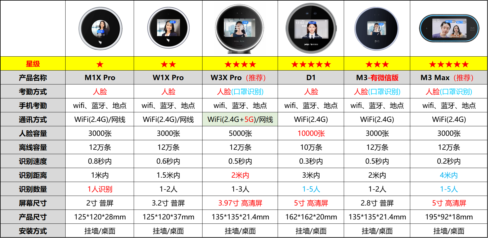 钉钉人脸识别考勤门禁机2024年新产品对比图